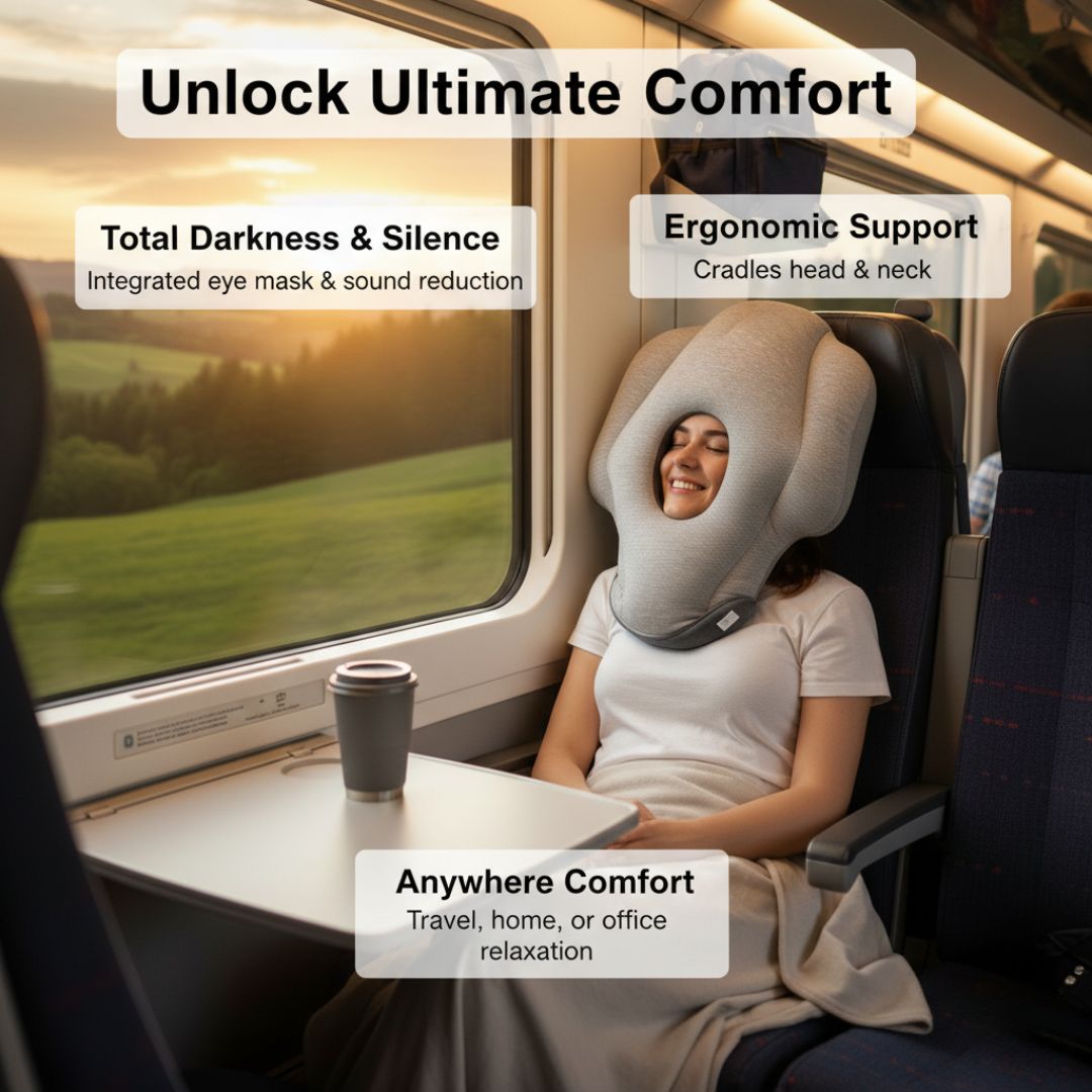 Traditional neck pillows only support your neck but they don’t block distractions. This headgear creates a full sleep cocoon, so you relax faster and sleep deeper.
